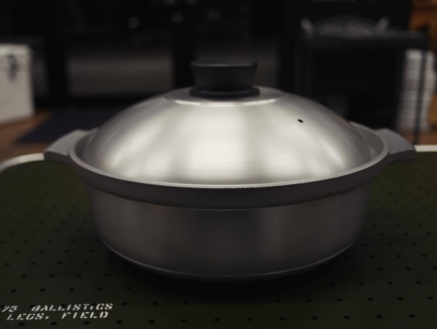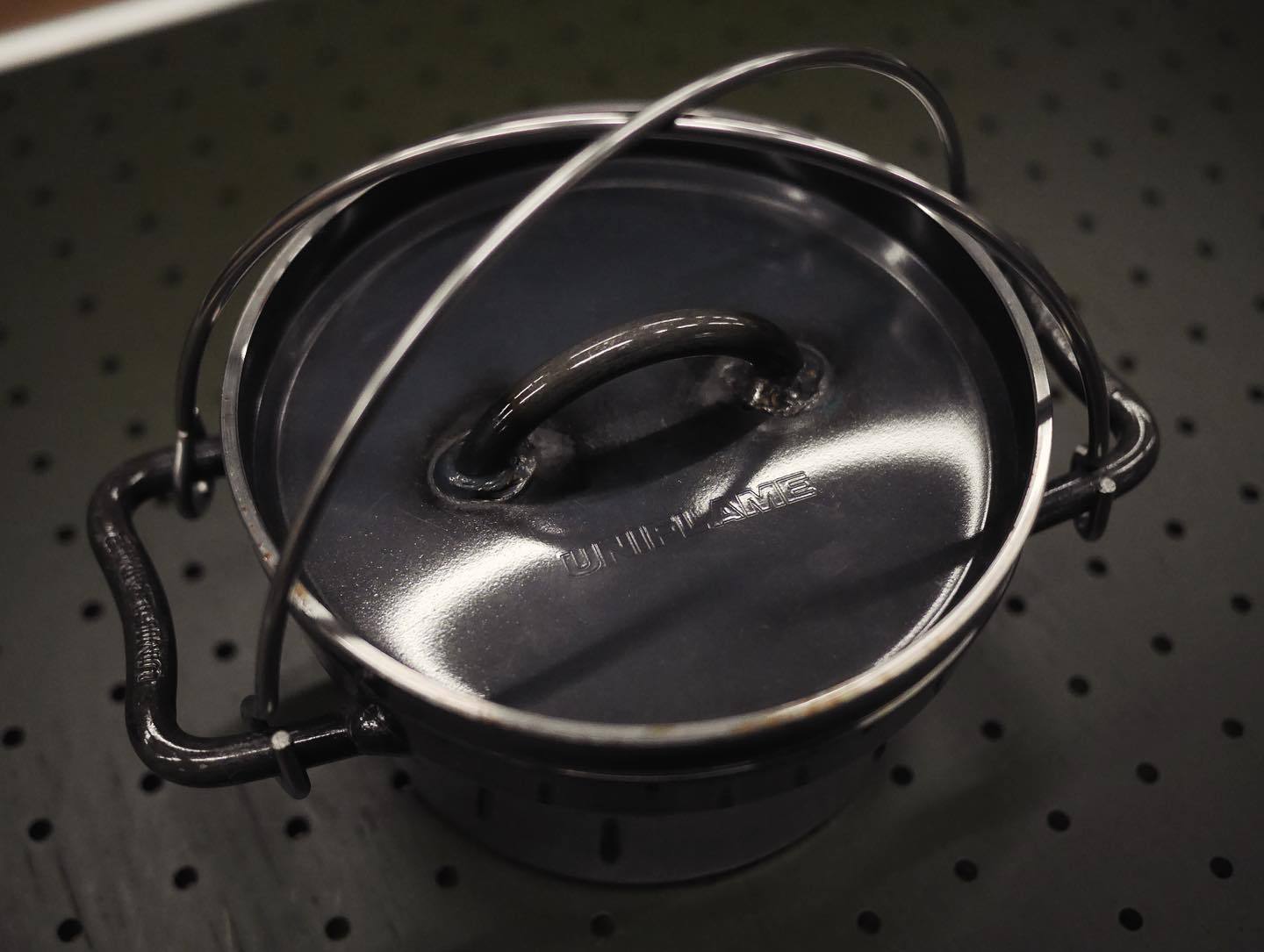 他のアイテムと少し毛色の違うエバニューのポットは、アルミ製の鋳物の鍋。