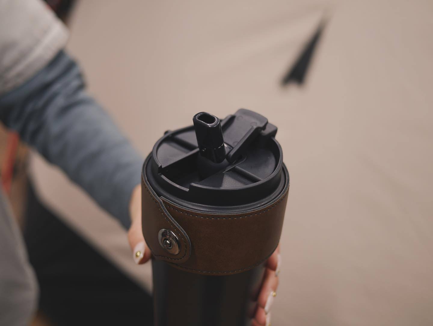 ストロー搭載のタンブラーって、ポップなデザインのものが多いけどコレはシックで大人な印象。